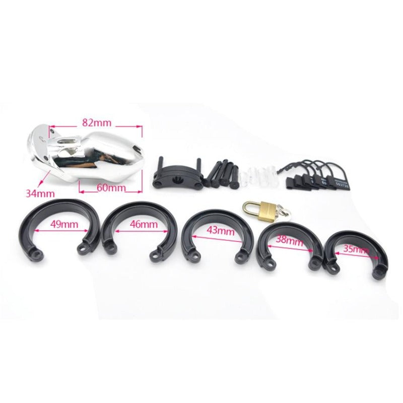 Si votre partenaire débute dans l’exploration des cages de chasteté, vous êtes au bon endroit. Cette cage est accompagnée de cinq tailles d’anneaux pour s’adapter au mieux. La taille la plus petite est d’environ 3,5 cm et la plus grande d’environ 4,9 cm. Choisissez la taille adéquate en mesurant le pénis de votre partenaire lorsqu’il est au repos. Voici comment mesurer facilement : enroulez un mètre ruban autour de la base du pénis, derrière les testicules, puis divisez par deux la circonférence obtenue pour obtenir le diamètre. Une fois ce chiffre trouvé, sélectionnez parmi nos cinq tailles d’anneaux.