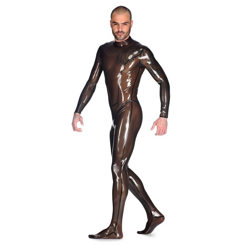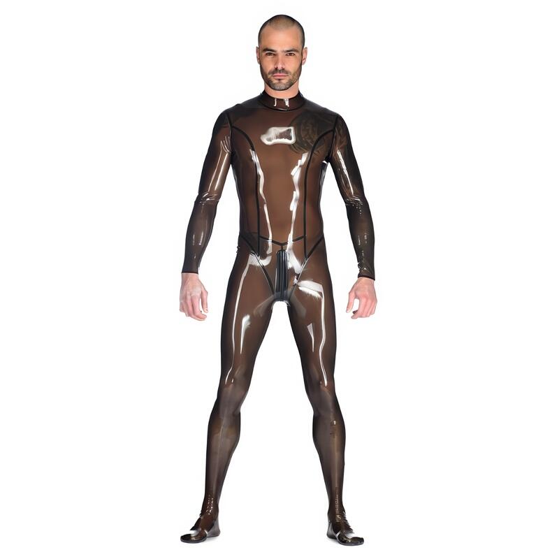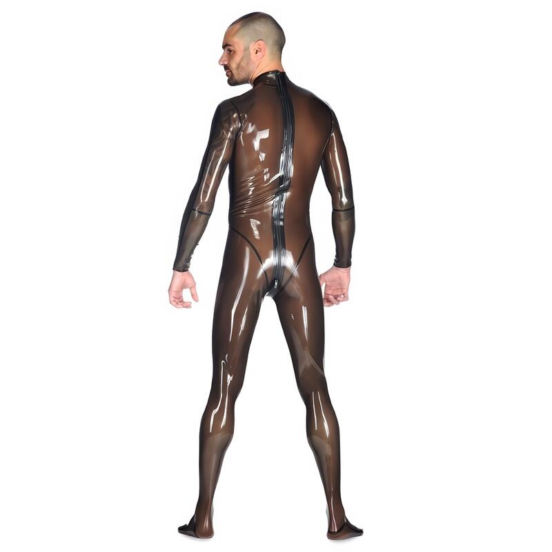 Exprimez votre fierté à travers votre silhouette séduisante sans compromis ! Procurez-vous cette combinaison en latex transparent pour hommes en cliquant sur “Ajouter au panier”.
