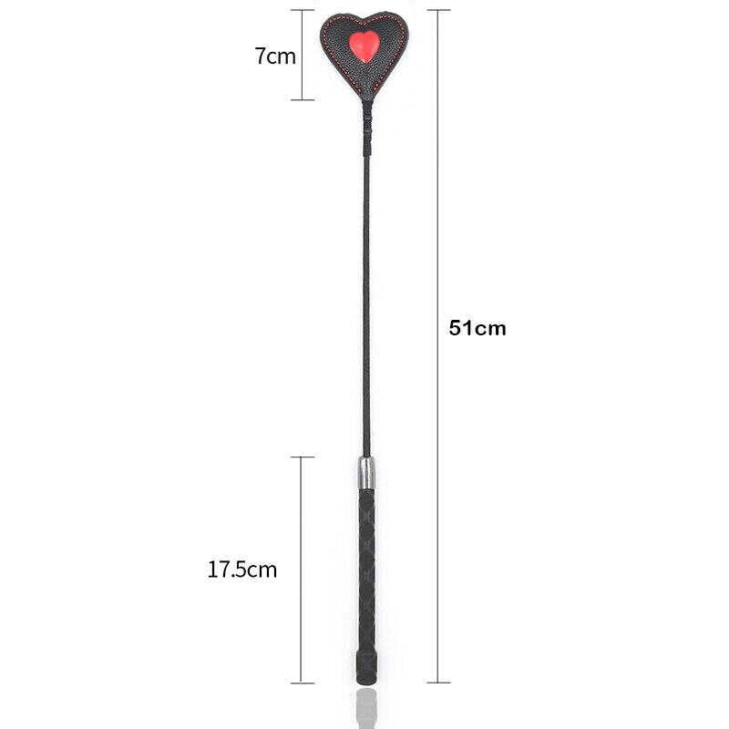 Idéale pour les jeux de poney ou pour des séances de jeux d’impact dans des espaces confinés, la cravache de soumise est équipée d’un embout en forme de cœur avec une découpe en cœur.