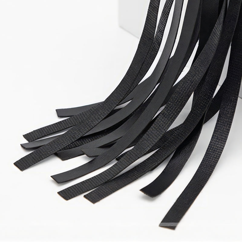 Doté d’une manche longue noire, élégamment fabriquée pour une prise optimale et une portée augmentée, ce martinet est à la fois majestueux et sophistiqué. Chaque détail, des lanières minutieusement taillées à la poignée agréable au toucher, a été conçu pour offrir une expérience agréable autant pour le donneur que pour le receveur.