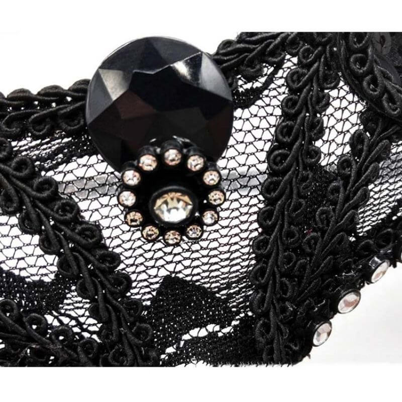 Ce masque félin sexy vous ouvrira la porte de nouvelles expériences. Son matériau en dentelle PVC laisse émaner un charme irrésistible qui enrichit la personnalité captivante de votre Sub. Les détails soignés du masque sont une belle illustration d’un artisanat exquise, et elle adorera le porter. Des strass scintillants embellissent le tissu délicat, offrant une finition raffinée. Agrémenté de moustaches coquettes, ce masque pimentera vos séances de jeu !