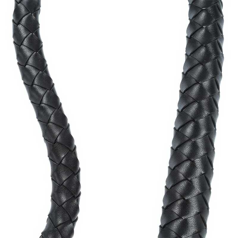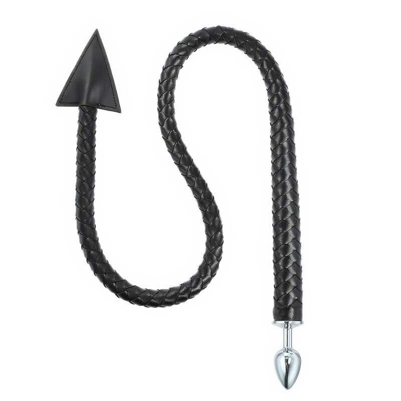 La queue en simili cuir tressé de haute qualité apporte une touche de sophistication et offre une flexibilité optimale pour ceux qui aiment exprimer leur dominance ou soumission avec flair. La tête noire triangulaire, finement travaillée, inspire des passions brûlantes et des fantasmes enflammés.